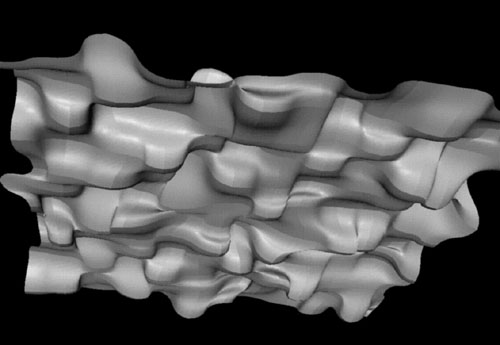 A 12x12 spline surface patches wavestructure example exposing some of the aesthetic quality I hope to achieve beside its structural behaviour