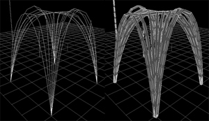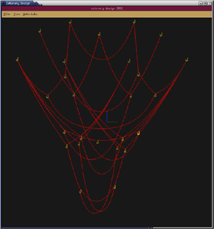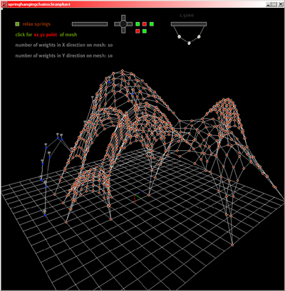 Reworked catenary project in processing with modeling capabilities by Axel Kilian Spring 2004.