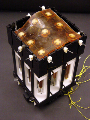 The flexible surface is cast in rubber with embedded springs that connect