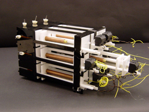 Posistion sensing is accomplished through sliding pot rulers at each Piston.